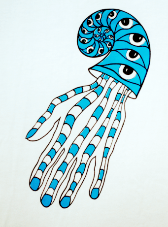 black + blue on mint shirt